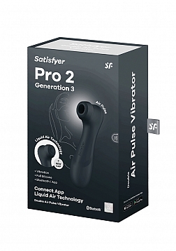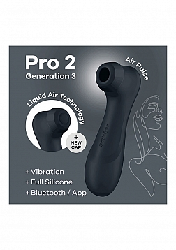 Get ready for a new wave of pleasure! The Pro 2 Generation 3 is the latest edition of our iconic Air Pulse pleaser, now also with vibration and innovative Liquid Air Technology which creates a sensation like the sensual surge of pulsing water. With a smooth, silky silicone finish and a weighted head for ergonomic handling, the Pro2 Gen3 delivers the intense orgasms you know and love. But now, you'll be flooded with the pleasure of a tapping touch as the air pressure waves arouse your clitoris through a thinly sheathed cap. Bluetooth enabled, the Pro2Gen 3 Connect App pairs with our award-winning, free, Satisfyer Connect app, giving you the option to have complete control the powerful motor and truly customize your pleasure. Of course, you always have the option to use without the app and control via the panel buttons for 11 pressure wave and 12 vibration program options. The Pro2 Gen 3 Connect App is made of body safe silicone, is rechargeable, and is IPX7 Waterproof rated. Enjoy the rush!