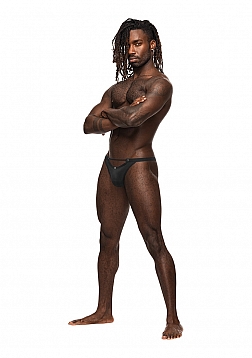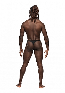 From the Male Power Magnificence collection this style includes a Micro V Thong with a cut out window on the waist , decorative metal grommets, and a slim, stay put plush elastic waistband, with a V shaped fabric insert in t-back.