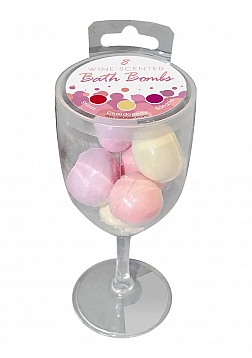 A set of sweet smelling wine-scented bath bombs packaged in a fashionable, hard-plastic wine glass.  Immerse yourself in the experience by enjoying a glass of your favorite refreshment with a dip in the tub.  Choose from one of three intoxicating scents:  Shiraz, Chardonnay, or Sangria.