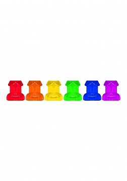 Each shot glass holds approximately 1.5 oz. This rainbow colored set makes for an attractive and colorful display. Includes: 6 rainbow-colored penis-shaped shot glasses.