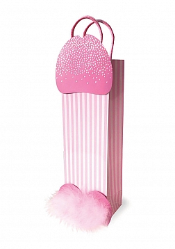 Gift giving never looked so good. This playfully sexy gift bag is the perfect size for gifting vibrators or wine. Made of thick cardstock and sturdy woven handles, this tall gift bag is shaped like a penis with glittery sequin sparkles and marabou feathered balls.