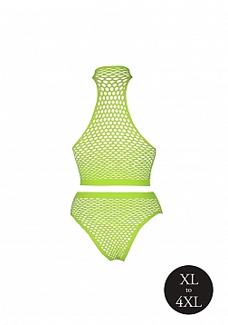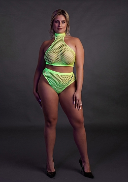 Unleash your inner goddess with this stunning UV activated lingerie. This piece consist of a turtle neck crop top and high waist panty. An amazing party-wear that gives you that wow-factor and makes you stand out. The UV activated materials adds a touch of mystery and allure. Easy to fit because of the stretchy materials will make you light up the night.