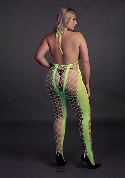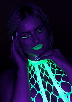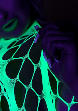 Unleash your inner goddess with this stunning UV activated lingerie. This gorgeous bodystocking has a showstopping halterneck and a low-cut back. An amazing party-wear that gives you that wow-factor and makes you stand out. The UV activated materials adds a touch of mystery and allure. Easy to fit because of the stretchy materials will make you light up the night.