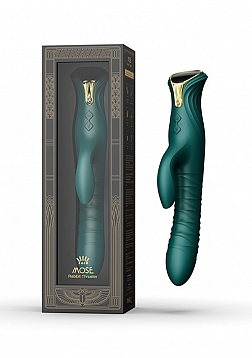 MOSE features ZALO's one-of-a-kind PowerThrust technology, which is uniquely powerful while operating silently, with its shaft that thrusts forward by up to 15 mm and can deliver up to 8 thrusts per second for intense internal stimulation. At the tip of the shaft is a vibrating motor to target the G-Spot with rumbly vibrations as the shaft thrusts in and out. The base of MOSE's shaft is equipped with a separate motor that provides direct vibration directly to the clitoris. MOSE also is enhanced with a pre-heating function to heighten its lifelike feel and a display screen for easy monitoring of the functions and intensity.
