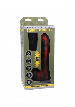 With the Tendril Thruster, it's all about the back-and-forth stroke to deliver the feel of a hard poundin' textured top. With a stroke of just under 2 inches, the Tendril Thruster nearly matches the stroke of big fuck machines. The super charged engines of the Tendril Thruster deliver the power to drive deep. We made sure it's strong enough to penetrate the tightest holes. The mushroom-shaped head is super soft n' cushy, for EZ entry, and the tendrils give extra stimulation. Controlling this power top is easyÂ… use the remote or the buttons on the balls. You have 2 speeds of fuckin', which offer slightly faster versions of the basic stroke. Unlike traditional fuck machines, ours also offers 8 vibration settings. Powered by a state-of-the art lithium battery, the run time is around 45 minutes. USB rechargeable, and it takes about 1.5 hours to recharge. Made of Premium Liquid Silicone, so you can use any lube. While the Tendril Thruster is not whisper quiet, we felt that an engine with a little roar was essential to deliver the thrust that piggy holes crave.