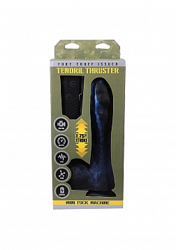 With the Tendril Thruster, it's all about the back-and-forth stroke to deliver the feel of a hard poundin' textured top. With a stroke of just under 2 inches, the Tendril Thruster nearly matches the stroke of big fuck machines. The super charged engines of the Tendril Thruster deliver the power to drive deep. We made sure it's strong enough to penetrate the tightest holes. The mushroom-shaped head is super soft n' cushy, for EZ entry, and the tendrils give extra stimulation. Controlling this power top is easyÂ… use the remote or the buttons on the balls. You have 2 speeds of fuckin', which offer slightly faster versions of the basic stroke. Unlike traditional fuck machines, ours also offers 8 vibration settings. Powered by a state-of-the art lithium battery, the run time is around 45 minutes. USB rechargeable, and it takes about 1.5 hours to recharge. Made of Premium Liquid Silicone, so you can use any lube. While the Tendril Thruster is not whisper quiet, we felt that an engine with a little roar was essential to deliver the thrust that piggy holes crave.