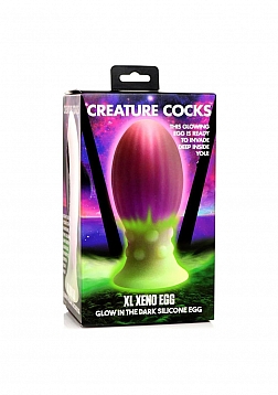 Expand your horizons beyond the known universe and get one of our alien xeno eggs by Creature Cocks! This pink, purple and green egg glows in the dark so you can have a radioactive looking alien egg! Or you can imagine that you are taking in a whole new kind of creature and their especially unique phallus! With ribbed sides and a bumpy neck you can enjoy extra stimulation. The tapered tip helps you insert it and the round, wide body gives you a satisfying fill! Use it vaginally and enjoy laying the egg as you push it out post-penetration! The egg is made from premium, phthalate-free silicone and is plush, silky smooth. Use only with water-based lubricants. After use, wash with warm water and mild soap then rinse and spray with a toy cleaner. Store in a cool, dark place. To make the toy glow, expose it to sunlight or a UV flashlight.