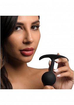 Key Features: Round Bulb Plug: Find the perfect size for your backdoor with this round plug! See if you can slip the large, round bulb into your hole and enjoy the firm, full feeling in your rear! Weighted with Metal: Unlike other toys, this plug is weighted with a metal core so you have to work your sphincter muscles to hold it in. Train your bum and enjoy the extra pressure against your insides as you move around into different positions! Premium Silicone: Play worry free with premium, phthalate-free silicone. The plush, silky smooth and flexible material is perfect for anal exploration and enjoyment! Use only with water-based lubricants. Slim Neck and Base: Make more space for your buttcheeks with a slim neck and base! The small neck makes it safe to insert without worry and the slim base makes it possible to sit on your bottom while the plug is inside so wearing it is more comfortable!