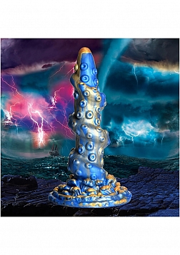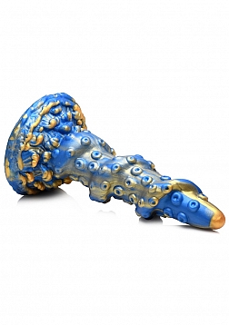 This Kraken Silicone Dildo is here to add to your deviant, deep-sea fantasy collection! With a deep blue and shimmering gold color, it's automatically an eye-catcher. The wide base doubles as a suction-cup base for hands-free rides. It can also be used with your lover when combined with a compatible strapon harness! At the base are countless, small, wave-like features that look as if they're crashing against the titanic kraken rod! As the dong emerges from the base, it has a twisted whorl that swirls up towards the tip along with several, small octopus-like suckers. The tip is tapered just enough to help with insertion but, after you get the tip in, you'll be feeling all the textures this kraken offers! Perfect for roleplay, cosplay, fantasy kink or just as a unique and satisfying toy for you or your partner! Made out of premium silicone, this dong is phthalate-free and body-safe. Use only with water-based lubricants. To wash, use warm water and mild soap then spray with a toy cleaner and pat dry.