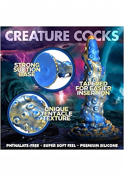 Key Features: Creature Cock Dildo: Blue and gold, it shimmers in the light. The twisted spiral that ascends to the tip of this dong adds extra sensation along with multiple, small suckers. At the base are tiny waves splashing against the rod. Premium Silicone: With a firm, flexible core and soft, squishy outsides, this phthalate-free and body-safe premium silicone is best used with water-based lubricants to give you the pleasure you desire! Suction Cup Base: Go hands-free by pressing the base on any flat surface and riding it! Harness Compatible: Pair with a compatible harness and ring so you or your partner can wear this Kraken Dong!