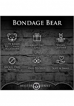 Key Features: Great Novelty Gift!!: This hooded bear makes a perfect little gimp for your amusement! Give it as a gift or keep it for yourself! Its little, peach bear body is dressed in PU leather underwear and a gimp mask, a chain leash connects to its collar. Keychain Accessory: Add this fun keychain accessory to your bag or keys! Nickel-Free Metal: All metal used in nickel-free and body-safe.