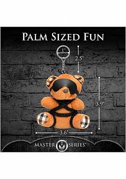 This little bondage bear just loves shi-bear-i! All tied up with silky rope and blindfolded, it's the perfect companion for your office desk, backpack, bag, purse or keychain! Give it as a gift to your friends or keep it for yourself. It's the cutest way to flag your kinky side! Fits in the palm of your hand. This kinky bondage bear is sure to put a smile on your face! Made out of polyester, PU faux leather, plastic and nickel-free metal.