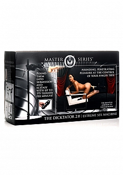 Create your ultimate at home BDSM and sex station with this new and improved sex machine! The Dicktator 2.0 provides pounding, penetrating pleasure at the control of your fingertips. Get creative with your bondage set-up and simply add the Dicktator in with its customizable stand. Assemble in less than 5 minutes and enjoy incredible machine-powered sex on your own or with a partner!