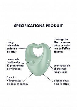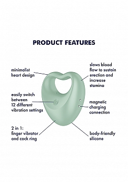 | Dimensions package | 10,70 x 5,60 x 14,60 cm | | Weight package | 200 gram | | Product dimensions | 6,3 x 6,8 x 3,1 cm | | Product weight | 55 gram | | Product diameter | 6,8 cm | | Inner diameter | 3,9 cm | | Quantity motors | 1 | | Speed modes | 12 | | Multi speed | Yes | | Rechargeable | Yes | | Phthalate free | Yes | | Materials | Silicone, ABS |