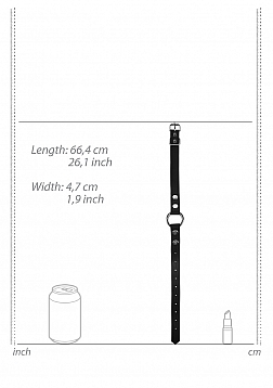 | Dimensions package | 9 x 5 x 16,50 cm | | Weight package | 182 gram | | Product dimensions | 66,4 x 4,7 x 3,4 cm | | Product weight | 125 gram | | Product diameter | 4,7 cm | | Inner diameter | 3,5 cm | | Splashproof | Yes | | Phthalate free | Yes | | Specifications | 10 holes in the strap to adjust the length. | | Materials | 45% PU leather, 55% Metal |