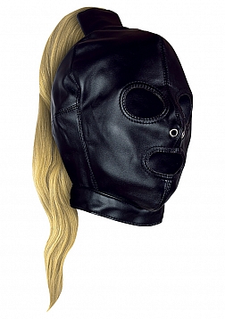 Ready to bring your wildest fetish fantasies to life? Explore this Mask with Blonde Ponytail that keeps your face hidden while leaving your eyes, nose, and mouth exposed for maximum excitement! It comes with a killer long blonde wig attached at the top, giving you that irresistible ponytail effect. Simply slip the hood on and tighten it with the laces on the back. Get ready to embrace the thrilling desire to be tied up as you dive headfirst into a world of pleasure and exploration.