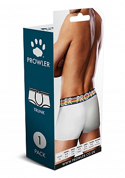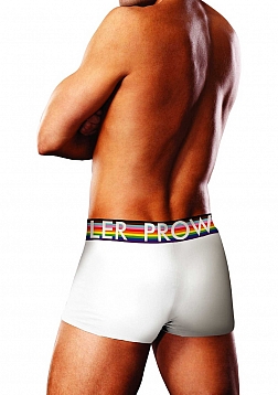 Prowler believes that underwear shouldn't be boring, it should be fun and make you feel sexy. This trunk style will make you feel confident and comfortable wherever you go. Made of skin-friendly fabric that won't ride up or fall, and this trunk features Prowler's signature paw print adorning the crotch, as well as a Prowler logo waistband featuring the Progress Pride flag colors. Offering comfortable coverage, eye-catching detail and a tribute to the diverse LGTBQ+, this trunk is perfect for everyday celebrating.