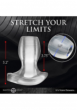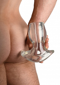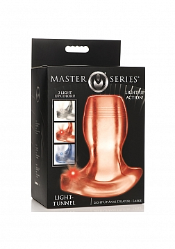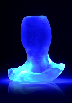 After doing any needed warm-up stretching, lube up the dilator and slip it inside. Place your fingers inside the tunnel to help guide it in until the sphincter squeezes around the neck and the toy stops at the flared base. To make things easier, have the LED light already inserted into the toy and turned on. Then enjoy pouring any fluids or liquids into the tunnel, or gaze into the gaping hole, or see if you can insert an anal-safe toy inside the tunnel for extra stimulation. Have fun with this illuminated booty and enjoy!