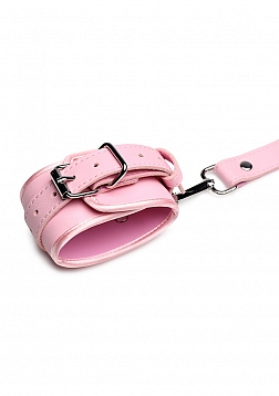 The use of your body is a gift; treat it like one with this bondage harness and wrap up your waist, thighs and wrists like a nice, little package -it even has bows included! Made out of pink, durable PU faux leather, it is vegan friendly and easy to spot clean or wipe clean after each use. The wrist cuffs close using nickel-free, silver colored metal buckles. Adjust the buckles on the thigh straps, waist strap and wrist cuffs for a custom and comfortable fit. Accentuate your curves and make your partner drool with lust and desire as you present yourself as the object of their admiration, a bound and submissive playmate ready to spice up the night!