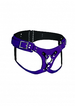 Peg your partner in style with this deluxe leather corset harness! Vibrantly colored, it is also beautiful, flattering to your figure, and comfortable to wear! Made out of leather, the outside is brushed so it is soft. It's durable, long-lasting and forms to your body the more you wear it. Adjust the straps around the thighs and hips using the nickel-free, metal buckles. Adjust the back with stylish, corset-style closure that has nylon laces. Along the inside is a soft lining that reduces chafing and makes wearing it more comfortable for long scenes. At the front is a metal o-ring. Spot clean as needed.