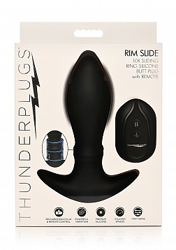Give yourself a special treat with this sliding plug that rims your rear entry while buzzing your booty! Made out of premium quality silicone, it is soft, smooth and phthalate-free for body-safe, worry-free fun! Inside of the toy is a motor that has both sliding and vibrating features. Choose between 7 sliding speeds and 7 vibrating patterns that you control with a rechargeable remote control! The sliding functions focus on the sphincter and simulate an intense rim job and feel like getting penetrated with the tip again and again! Designed to withstand wet environments, it's rated as IPX5 waterproof so it can handle low pressure water jets and lots of lubricant. Use water-based lubricant for best results. The tapered tip makes this plug easy to insert for those new and experienced to anal play. The slim, flared base makes this toy safe and allows you hours of secure comfort! Use the USB cable provided to recharge the plug or remote as needed. To clean, use warm water and mild soap, then rinse and spray with a toy cleaner before patting dry and storing in a cool, dark place.