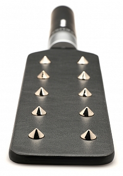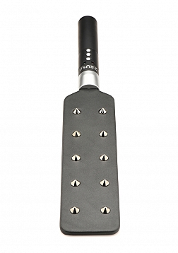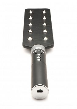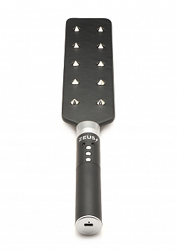 Materials: PU leather, ABS plastic, zinc alloy Color: Black Note: Keep away from water. Not recommended to use e-stim products on the chest or with partners who have pacemakers. Key Features: E-Stim Spikes: The electricity runs through every one of the conductive metal spikes so each hit has an extra shock! Flat Side of Paddle: Enjoy using the flat side of the paddle, as well. It's covered in vegan-friendly, faux (PU) leather. Two Levels of Stimulation: Choose between high or low intensity. Rechargeable and Nickel-Free: Use the USB cable to recharge between uses. All metal is nickel-free and body-safe.