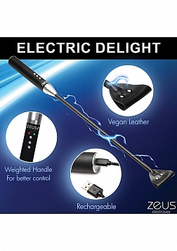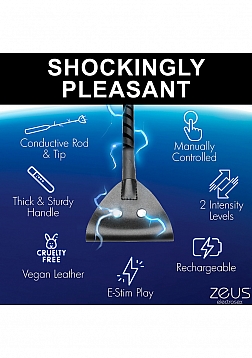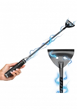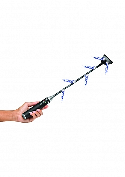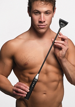 In your kinky scene you've introduced a new toy. It looks innocent at first glance, but the uniqueness is in the experience not the way it appears. As you turn your submissive partner over to expose their round backside, you tap the crop end lightly and warm them up. Then you give them a few quick whacks on their backside. Everything seems normal, until you turn the e-stim on and begin to shock them gently, and then more intensely! You hear them squeeling in surprise and pleasure in no time!