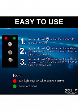 Note: Keep away from water. Not recommended to use e-stim products on the chest or with partners who have pacemakers.
