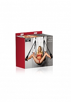 Elevate your pleasure with this Lover's Door Swing! This sex sling hangs over a closed door from nylon straps and stays in place via the ABS plastic cylinders that protect the door from scuffing and scratches. The strong, durable nylon is padded with polyester cushions that support the thighs and bottom. Two handles hang from the door frame as well so you can pull up to adjust your position and feel more secure. The swing can support up to 300 lbs! Seat pads, leg pads and hand rips are all adjustable. The straps are easy to hook over a door or clip to sex swing stand. Spot clean as needed or machine wash the straps and pads. All materials are phthalate-free and nickel-free.
