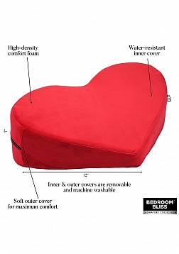 A little lift goes a long way with this heart shaped pillow! Made of high-density foam and covered in a velvety soft outer layer and a water-resistant inner layer, it's firm enough to lift you up and has enough softness to keep it sexy. Use it under your shoulders, chest, head, hips or knees to change the way you play! Both inner and outer pillow covers are machine washable, too! The soft outer layer keeps it sexy and sensual as your skin brushes against the fabric while the water-resistant, inner layer keeps your foam pillow moisture free!