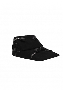 Reinvent sex with this bondage wedge pillow set! Positions you couldn't reach before are now accessible with these supportive, comfortable and velvety soft wedges made out of high-density foam. Reach new heights of enhanced pleasure and enjoy finding the perfect position and keeping your partner there with the built-in clips that matching wrist and ankle cuffs attach to! The velvety soft outer cover and the water-resistant inner cover are also machine washable so you can play hard, get wet, rinse and repeat!