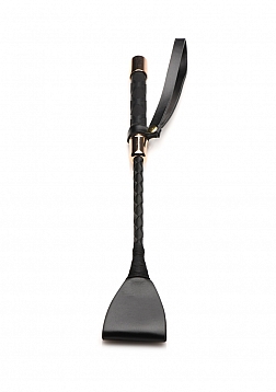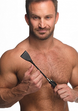 Add a sturdy crop to your collection and always have a wicked tool on hand for spankings and kinky play! This riding crop delivers a sharp and certain bite for when you want to kiss your partner with a touch of delightful pain. Made out of vegan friendly leather, this crop has a textured grip that helps you keep your grip as you play. The firm rod at the center is made of a glass fiber that is firm with enough flex to handle impact. The triangular end is perfect or precise and specific impact play. To clean, spray with a toy cleaner or a mixture of alcohol and water. Bend them over after some teasing and negotiation. Warm up their behind with a few spankings and floggings. When they're ready, start to tap them lightly with the triangle end of the crop. Each impact is precise and stings ever so slightly. Begin to go harder and harder, their skin flushing red, until they've had enough. Rub the spots where you hit them, then continue again when they're ready for more!