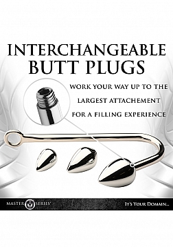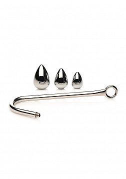 Key Features: Graduated Plugs: The smooth, nickel-free, metal plugs all have tapered tips for easy insertion and three different sizes that help you train and stretch with. Rope Bondage Tool: The o-ring at the top of the hook is perfect for tying rope to and using as part of a rope bondage scene! Non-Porous Metal: The stainless steel hook and the aluminum alloy plugs are non-porous and easy to clean! They are compatible with all lubricant types, as well. Temperature Sensitive: The metal can be slightly warmed or cooled for a more sensual experience.