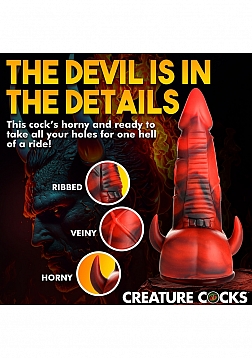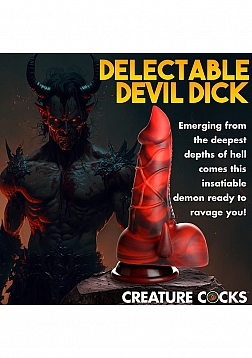 Key Features: Fantasy Dildo: This red and black Devil dildo has a fat shaft, tapered tip, popping veins, a shield like plate on one side to add texture and end in a row of teeth, and two little horns that sit on either side of a pair of big, round balls. Suction Cup Base: Enjoy the wide, suction cup base of this dildo. Simply press firmly on any flat surface and enjoy riding it hands-free! Harness Compatible: The wide, flanged base is compatible with most strap-on harnesses so you or a partner can wear the dildo and bring the fantasy fully to life! Premium Silicone: Made of body-safe, phthalate-free, premium silicone.
