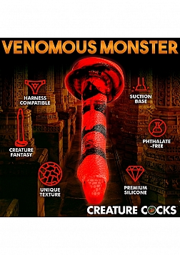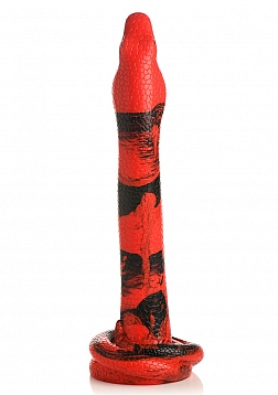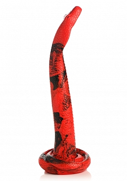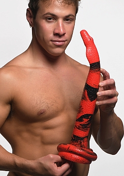 Key Features: Fantasy Dildo: Indulge in your fantasies with this red and clack, scaled, serpent anal hose! The tapered nose, wide flared neck, and long, flexible body is perfect for exploring your darkest caverns. Flexible Premium Silicone: Made out of premium, phthalate-free, body-safe silicone. It is flexible and best used with water-based lubricants. Harness Compatible: Use with a strapon harness for pegging play or couple's roleplay! Suction Cup Base: The suction-cup base lets you enjoy a hands-free ride!