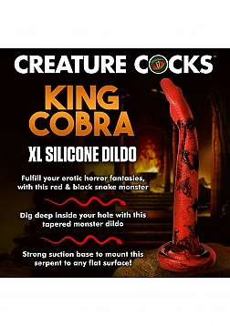 Are you ready to be ravaged? See how good of a serpent charmer you are with this 14 inch Cobra! Designed to uncoil and slither deep inside your rear entry, it is textured with tantalizing details that add intense sensation to your backdoor exploration! The tip of the hose is shaped like a cobra head. You'll enjoy that wide flare of its wide neck as it pops inside. The tapered, round nose makes insertion easy. It has a vibrant red and black body with textured scales that go all the way to the coiled base! Firm and flexible, it is made out of body-safe, premium silicone and is phthalate-free. Use only with water-based lubricants for best results! The base has a strong suction-cup on it so you can have those hands free to guide the snake into your cavern. The wide base is also perfect for combining with a strapon harness! Enjoy various ways to play with this sinful snake! Enjoy exploring your playful and wild side! Try out some kink cosplay or fantasy roleplay! After use, wash it with warm water and mild soap, then spray it with a toy cleaner and let it air dry.