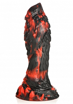 Note: use only with water-based lubricants. Key Features: Fantasy Dildo: This red and black dildo is thick, menacing, and textured with bumps, ridges, grooves and spiked nubs. Suction Cup Base: Enjoy the wide, suction cup base of this dildo. Simply press firmly on any flat surface and enjoy riding it hands-free! Harness Compatible: The wide, flanged base is compatible with most strap-on harnesses so you or a partner can wear the dildo and bring the fantasy fully to life! Premium Silicone: Made of body-safe, phthalate-free, premium silicone.