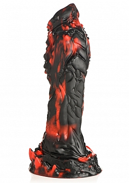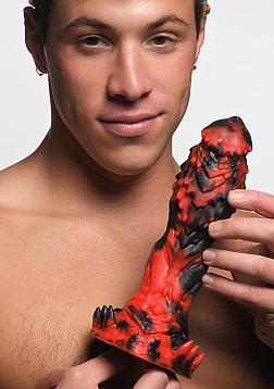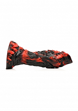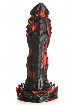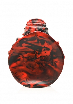 Note: use only with water-based lubricants. Key Features: Fantasy Dildo: This red and black dildo is thick, menacing, and textured with bumps, ridges, grooves and spiked nubs. Suction Cup Base: Enjoy the wide, suction cup base of this dildo. Simply press firmly on any flat surface and enjoy riding it hands-free! Harness Compatible: The wide, flanged base is compatible with most strap-on harnesses so you or a partner can wear the dildo and bring the fantasy fully to life! Premium Silicone: Made of body-safe, phthalate-free, premium silicone.