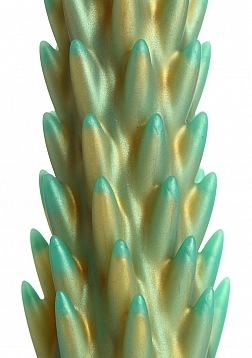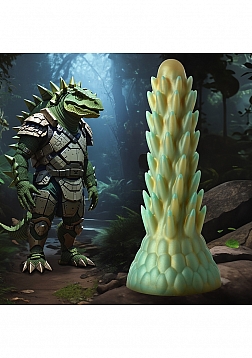 If you've ever found the spiked, bushy tail of a stegosaurus to be a turn on, or loved to hug a prickly, tall cactus, this spiky reptilian dildo is for you! It will treat you kinder than either the plant or creature mentioned, and add amazing new sensations while you explore its textured rod! It has a beautiful gold and teal color throughout the thick shaft. It tapers to a thinner, round tip for easier insertion. The base is round and covered in scales while the shaft itself has long, round-tipped spikes that point towards you as you impale yourself on this fantastically stimulating toy! Made out of premium, flexible, phthalate-free silicone, this dong is body-safe and best used with water-based lubricants only. Enjoy hands free rides due to the strong suction cup base! Invite a partner to indulge in kinky cosplay or fantasy roleplay and use their favorite harness to transform this dong into a strap-on! Afterward, make sure to wash it with warm water and mild soap, then spray it with a toy cleaner and air-dry. Keep out of direct sunlight and heat. You bask outside in the sun. It is a hot, summer day and there's no better place to be than on the banks of a river, your naked body resting on the hot, desert rocks under the midsummer sun, water droplets dripping from you as you dry off under the sun. Your hat shades your eyes and you let yourself melt under the heat as your muscles relax. You hiked out here, far from the trail, to get away from everyone. The only thing you hear is the trickle of water over stone and the occasional scratch of a lizard as it scurries across the rocks. You're feeling parched, so you lift the hat from you eyes and lift yourself up. It takes a moment to get used to the bright sun. as your eyes adjust you reach for your water bottle, blinded by the sun. As soon as your fingers touch it, you know it isn't your bottle. You immediately pull your hand away and recoil as the thing starts moving! You back off and look wildly around you, trying to figure out what you touched and where it is. Then you hear a loud, scratching sound. Claw marks