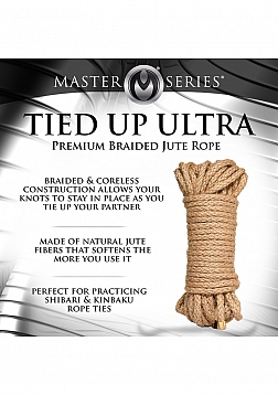 This braided jute rope has a smoother feel than twisted rope and keeps its form better. With less tendency to stretch, you can count on your knots and ties staying in place without slipping. As a plus, the ends of each strand are sealed with a metal cap so they won't unfurl or unravel. Jute is strong, long lasting and has its own unique texture and smell. Its earthy scent and slightly rough, stimulating fibers can be pleasing to the nose and skin, creating an unparalleled rope bondage experience. As you practice shibari or kinbaku rope ties, the rope softens the more you use it and takes on the oil from your body and hands. Jute is similar to hemp and is a highly personal type of rope that some consider more intimate than synthetic fibers. This coreless, braided jute rope is less likely to slip than nylon or silk ropes and is far more durable so it won't break as easily. Jute is one of the premium choices for riggers doing bondage suspension and a classic choice for rope enthusiasts!