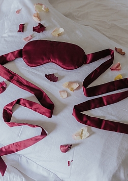 A silky soft mask to cover your eyes. Use it for a beauty sleep or as a play mask 'to blossom' all your dreams. Available in a fine purple color.